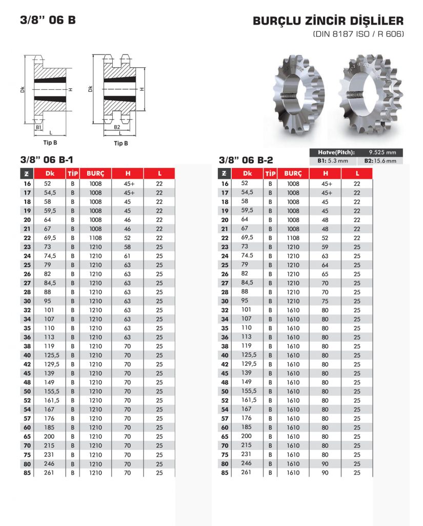 Burçlu Zincir Dişliler 3/8″ 06B