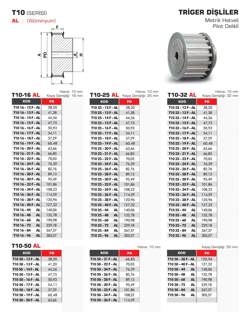 TRİGER DİŞLİLER T10 16 25 32 50 AL SERİSİ